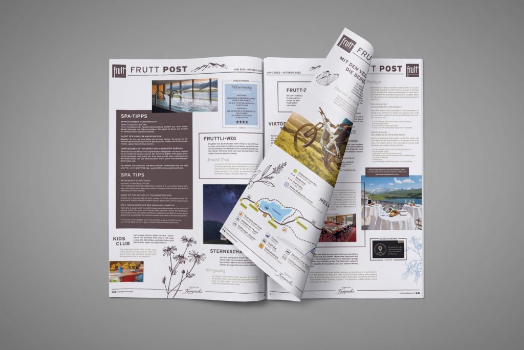 Konzept & Layout der neuen Hotelzeitung “Frutt Post”