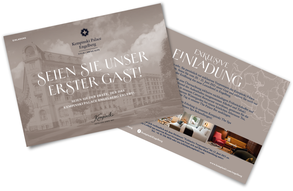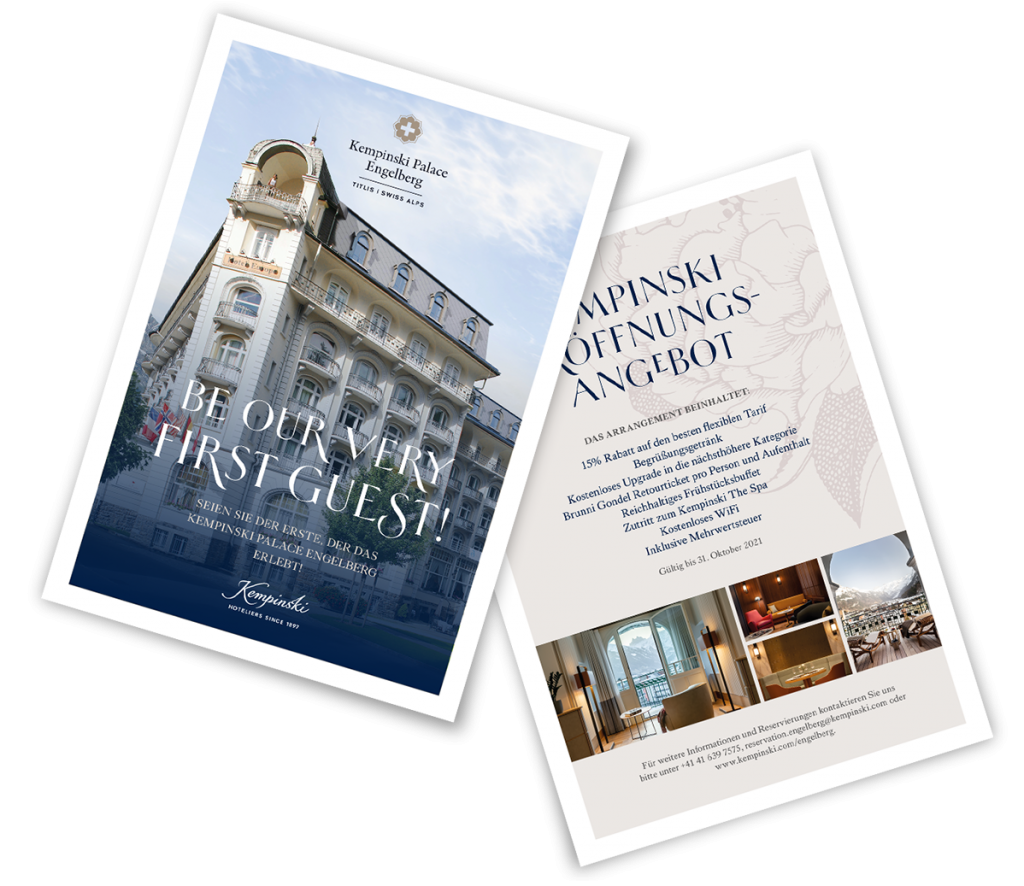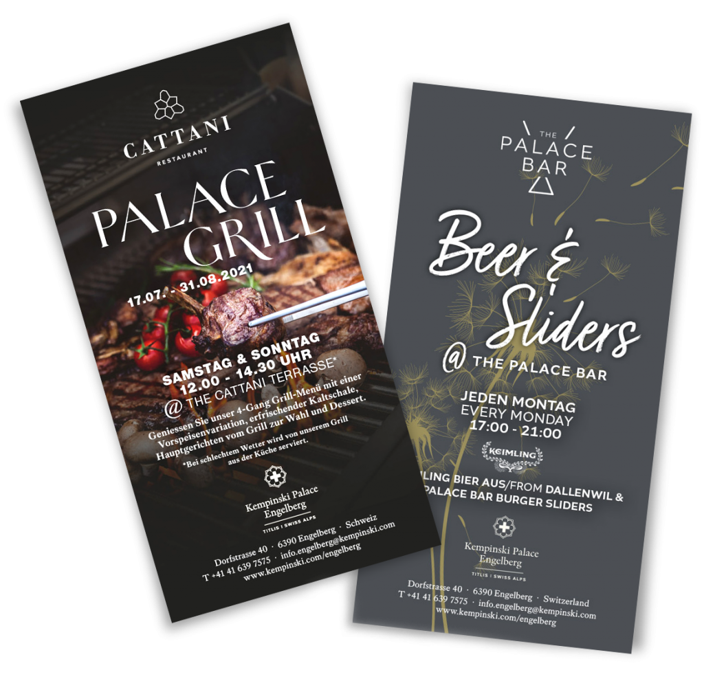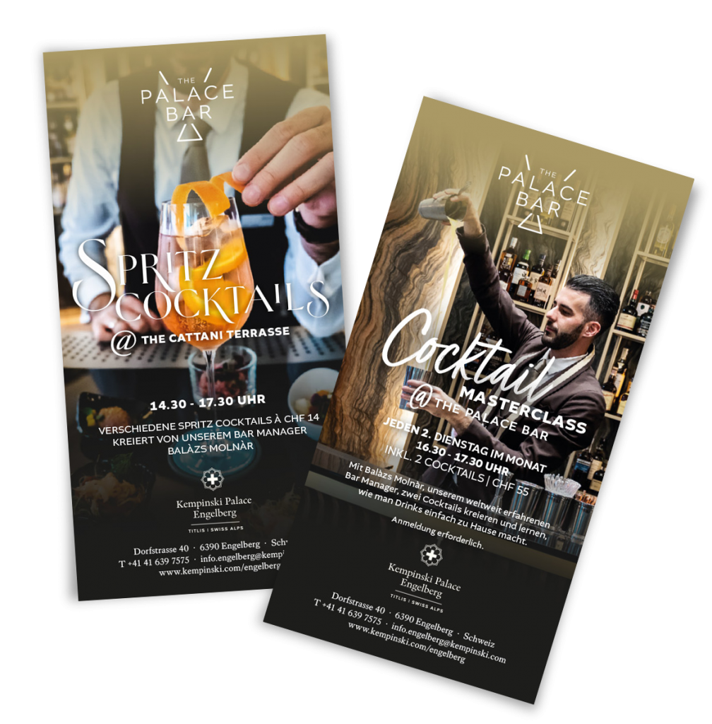 Portrait- und Food-Photography & Layout der Flyer (entstanden während meiner Arbeit beim 5-Sterne-Hotel “Kempinski Palace Engelberg”)