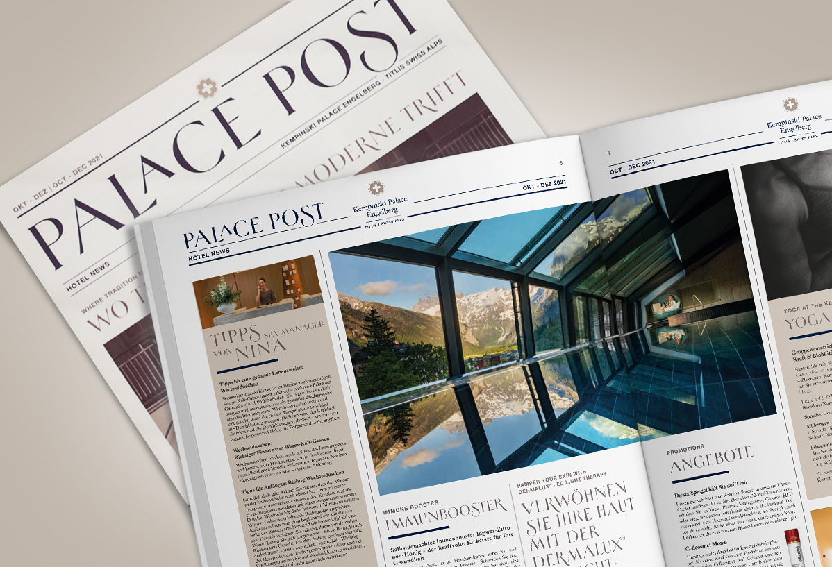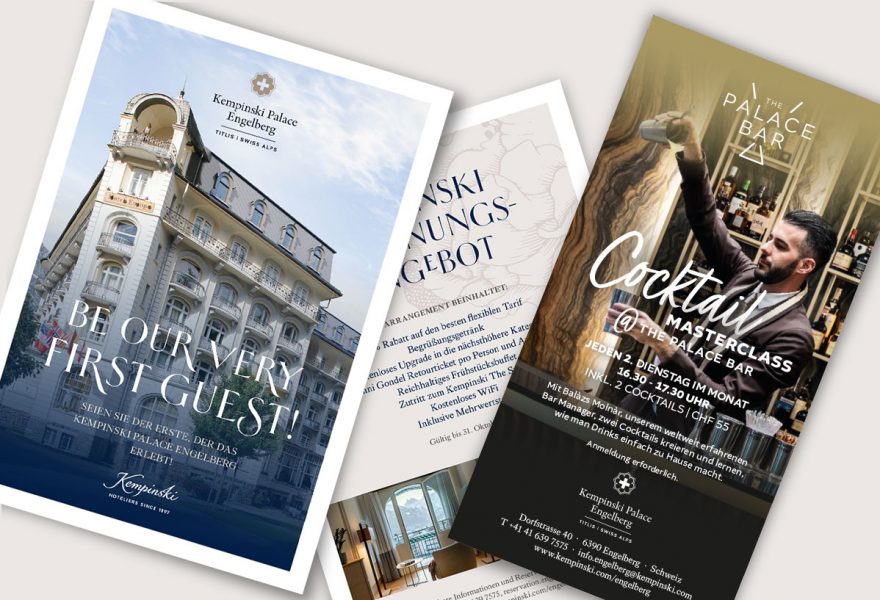 Die nachfolgenden Referenzen sind während meiner Arbeit bei der Werbeagentur “Alldesign – Agentur für Marketing und Kommunikation” in Deutschland, dem 5-Sterne-Hotel “Kempinski Palace Engelberg” und dem 4-Sterne-Hotel Frutt Mountain Resort in der Schweiz entstanden.